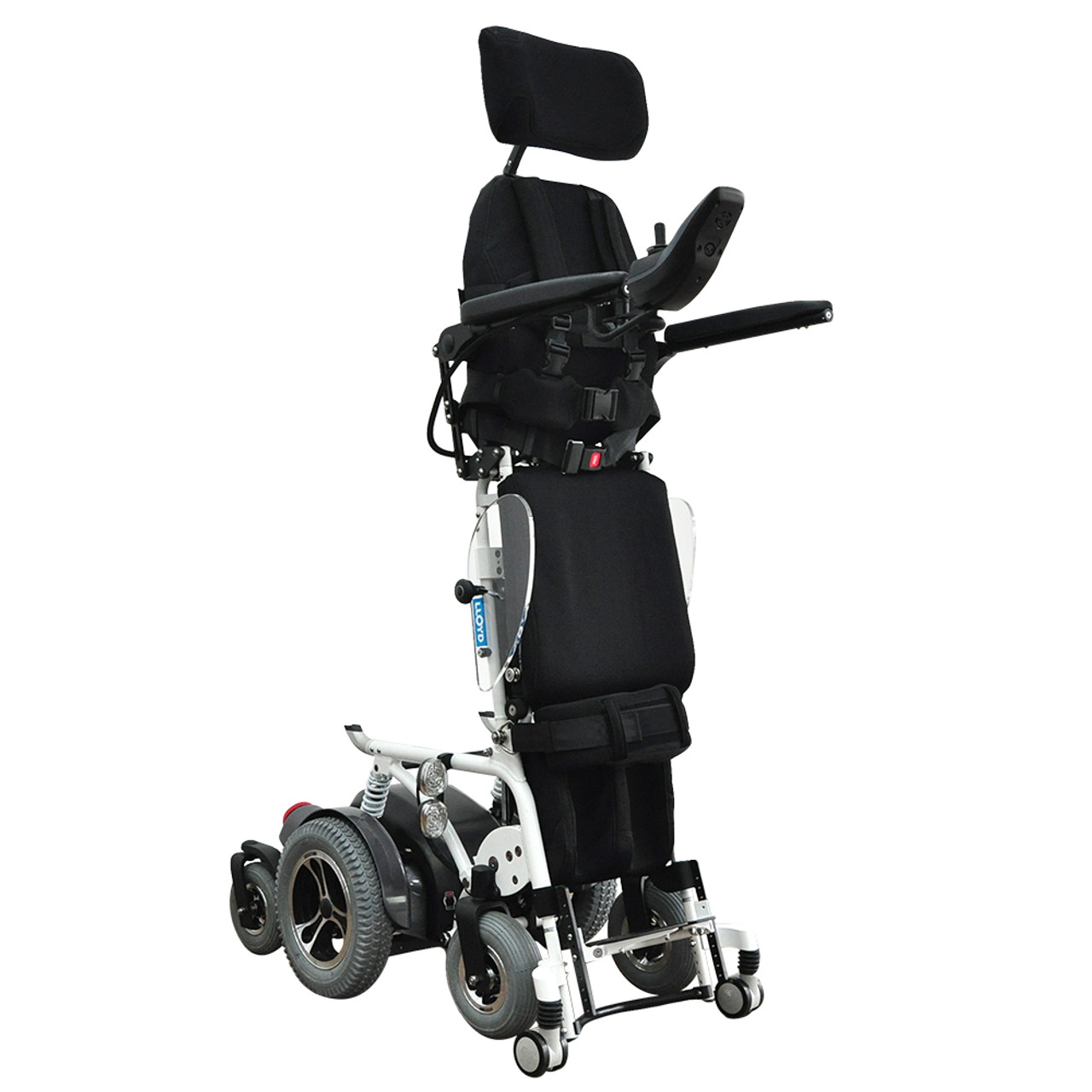 Draco standing wheelchair is the best electric standing wheelchair equipped with full function capability. It allows you to move, stand, sit, recline and lie down in safe and comfortable positions.