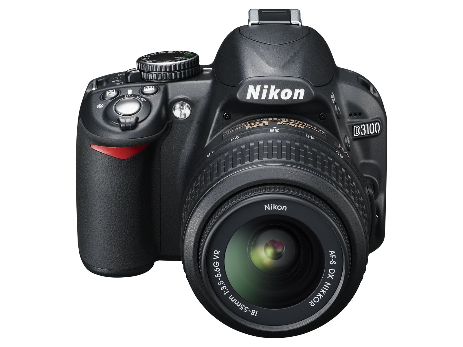 Nikon’s affordable, compact and lightweight D3100 digital SLR features a high-resolution 14-megapixel CMOS DX sensor, high-quality 3x NIKKOR 18-55mm VR image stabilization zoom lens and intuitive onboard assistance including the learn-as-you grow Guide Mode.