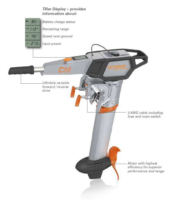 Intelligent on-board computer and all of the convenience of a Torqeedo electric drive system
