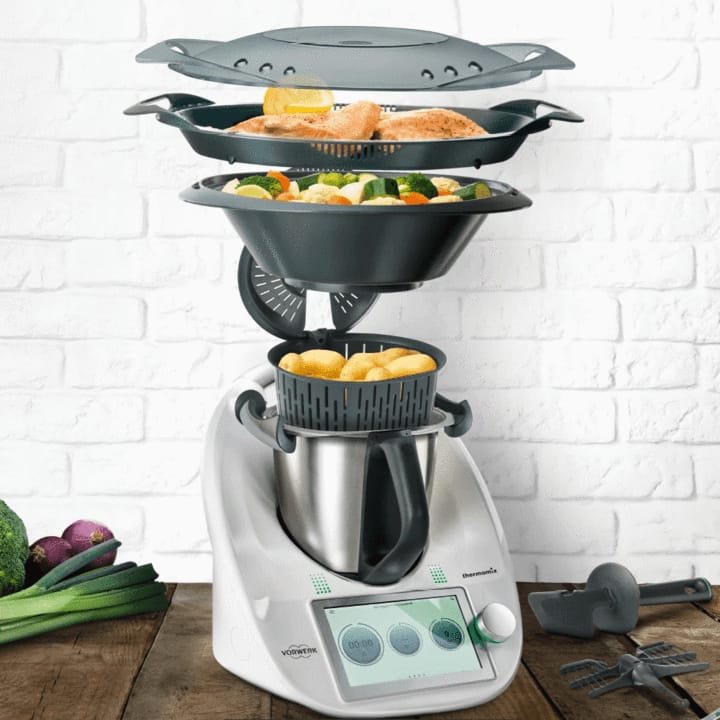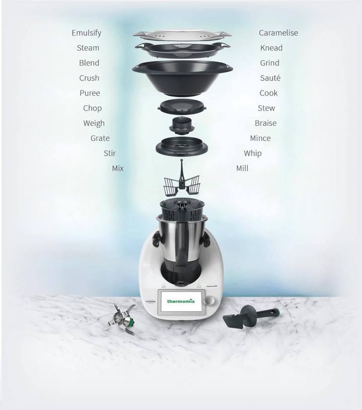 The Thermomix TM6 has 20 functions so you can blend, braise, chop, crush, caramelise, heat, knead, grate, grind, juice, mix, mill, mince, puree, weigh, whip, stir, steam, sauté, stew, slow-cook and sous-vide food quicker and easier than ever